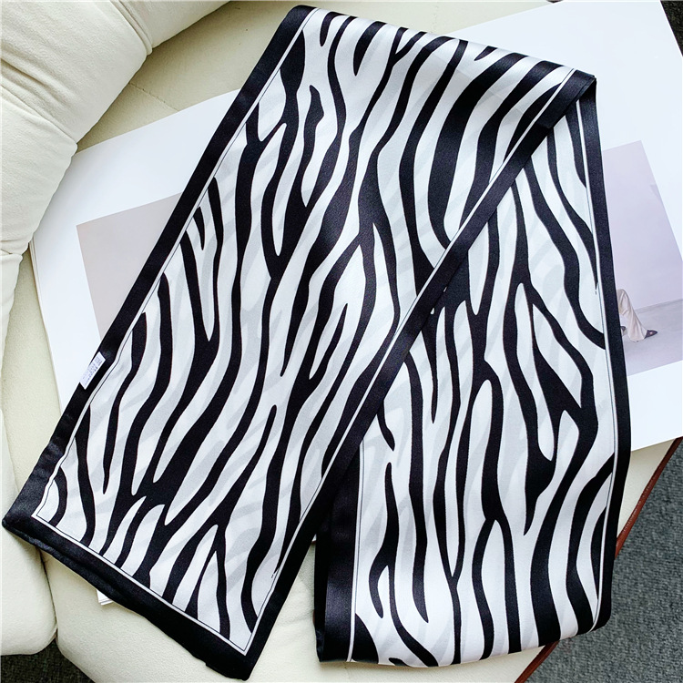 Black and white zebra print Mulberry Silk Scarf Streamer 070