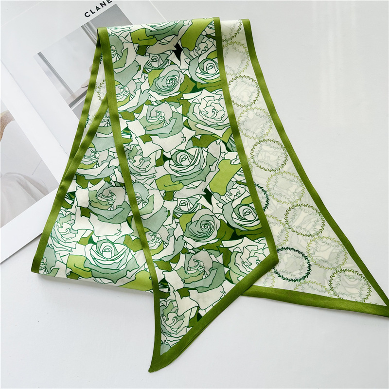 Green Rose Mulberry Silk Scarf Double Sided Scarf Streamer 041